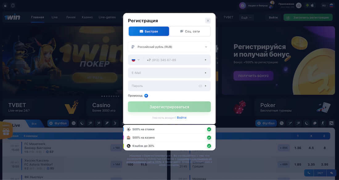 Помимо онлайн-казино, на платформе гости найдут ставки в букмекерской конторе, а для удобства пользователей предлагается простейшая навигация. Пройдя несложную процедуру регистрации в 1Win игроки не только становятся полноправными членами клуба с доступом ко всем преимуществам, но и получают щедрый приветственный бонус, который позволяет приступить к ставкам не тратя личные средства.