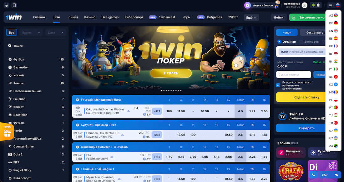 Стильный официальный сайт 1Вин имеет простую навигацию, которая распределяет весь контент по категориям. Даже пользователю без опыта не составит труда найти необходимые разделы, запустить игру в режиме на деньги или оформить запрос на пополнение счета.